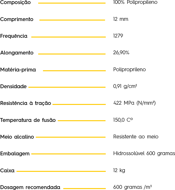 A Microfibra de Vidro MIXTECH 12 mm é produzida a partir de um percentual de zircônia. Sua maior característica é auxiliar na coesão do concreto em estágio plástico, minimizando o surgimento de fissuras e auxiliando na resistência à fadiga do concreto.